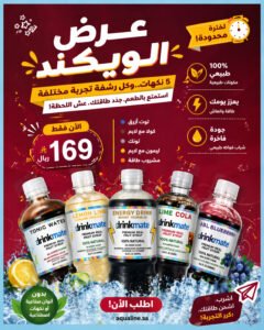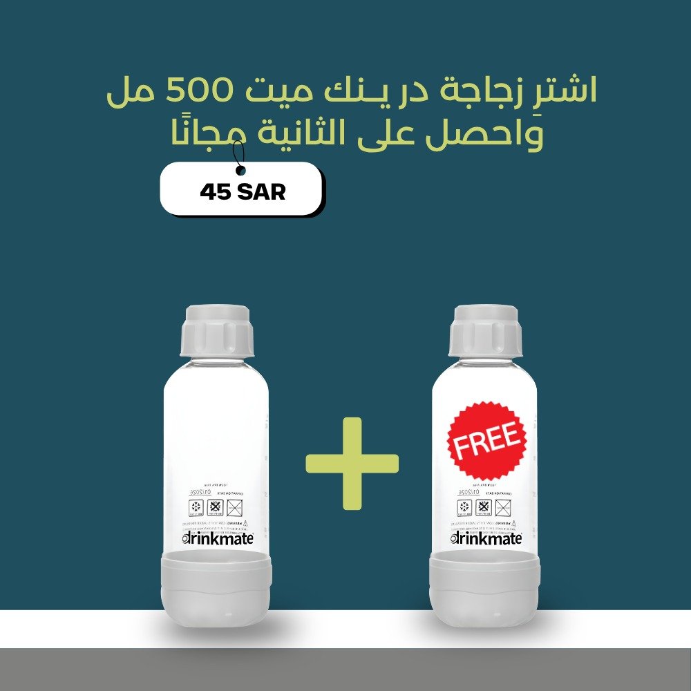 Buy 1 Drinkmate 500 ml bottle for 45 SAR and get the second free.